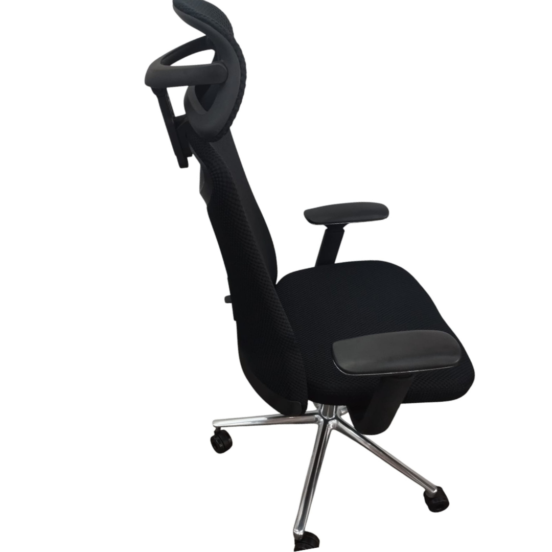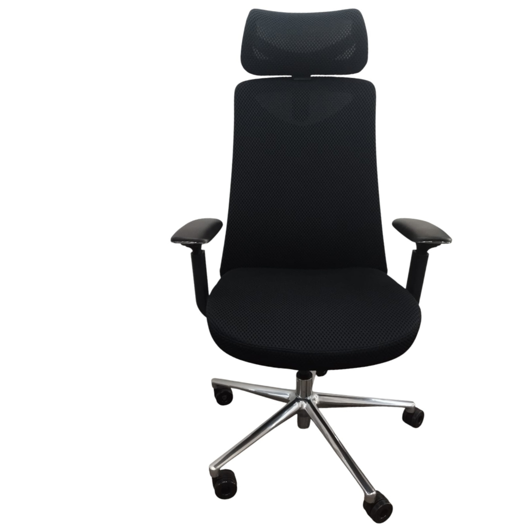 Silla Ergonómica Ejecutiva con Amplio Asiento, Cabezal, Brazos Regulables y Base Aluminio